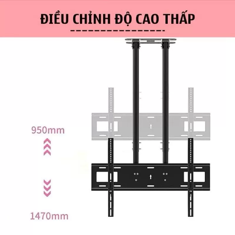 - Hạ trần: Ngắn nhất 1m14 – Dài nhất 1m59 ( tính từ điểm bắt trần xuống tâm tivi )